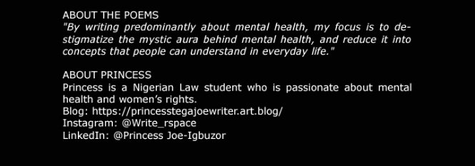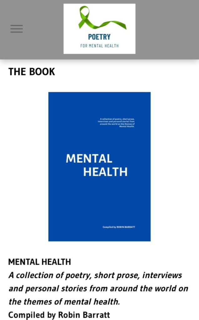 Thank you Robin and Poetry for mental health, It’s truly an honour to be featured in the 4th edition of your Poetry for mental health book series.